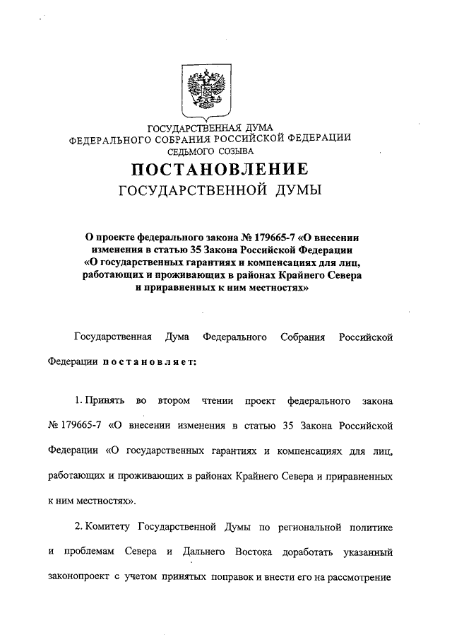 "О ПРОЕКТЕ ФЕДЕРАЛЬНОГО ЗАКОНА N 179665-7 "О ВНЕСЕНИИ ИЗМЕНЕНИЯ В