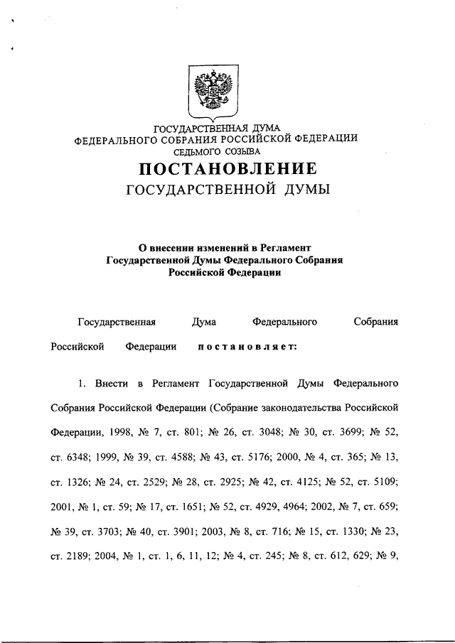 "О ВНЕСЕНИИ ИЗМЕНЕНИЙ В РЕГЛАМЕНТ ГОСУДАРСТВЕННОЙ ДУМЫ ФЕДЕРАЛЬНОГО СОБРАНИЯ РОССИЙСКОЙ ФЕДЕРАЦИИ"