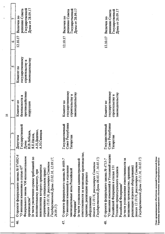 "О КАЛЕНДАРЕ РАССМОТРЕНИЯ ВОПРОСОВ ГОСУДАРСТВЕННОЙ ДУМОЙ С 11 ПО 27 ОКТЯБРЯ 2017 ГОДА"