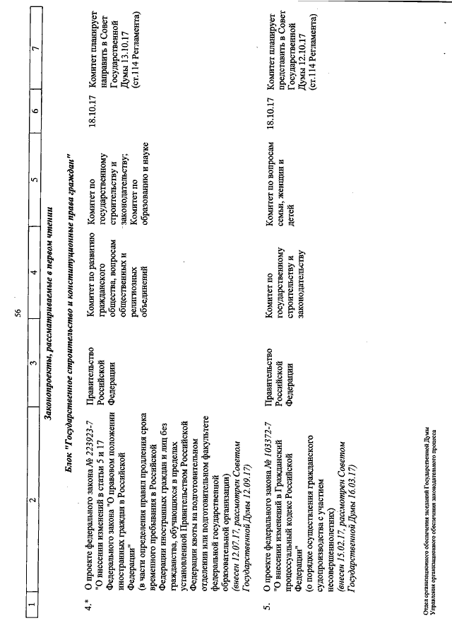 "О КАЛЕНДАРЕ РАССМОТРЕНИЯ ВОПРОСОВ ГОСУДАРСТВЕННОЙ ДУМОЙ С 11 ПО 27 ОКТЯБРЯ 2017 ГОДА"