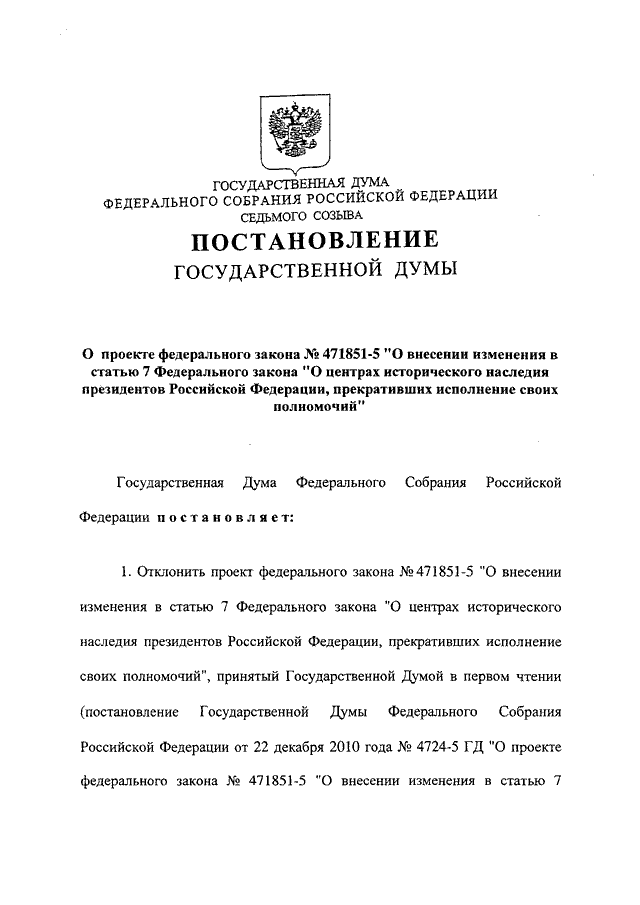 "О ПРОЕКТЕ ФЕДЕРАЛЬНОГО ЗАКОНА N 471851-5 "О ВНЕСЕНИИ ИЗМЕНЕНИЯ В