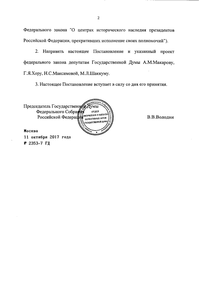 ПОСТАНОВЛЕНИЕ ГД ФС РФ от 11.10.2017 N 2353-7 ГД