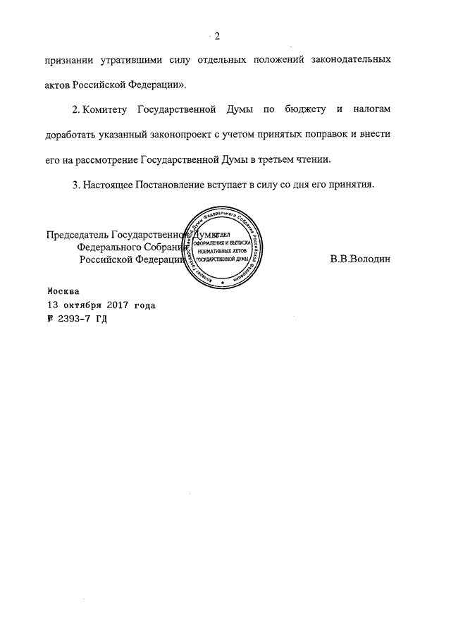 ПОСТАНОВЛЕНИЕ ГД ФС РФ от 13.10.2017 N 2393-7 ГД