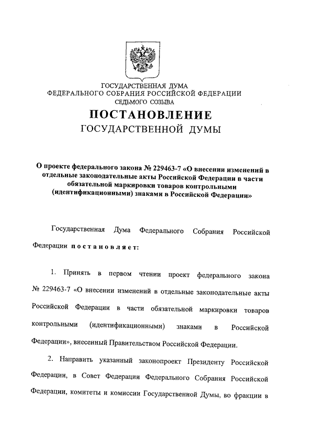 "О ПРОЕКТЕ ФЕДЕРАЛЬНОГО ЗАКОНА N 229463-7 "О ВНЕСЕНИИ ИЗМЕНЕНИЙ В