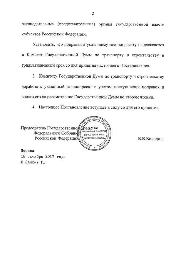 ПОСТАНОВЛЕНИЕ ГД ФС РФ от 18.10.2017 N 2442-7 ГД