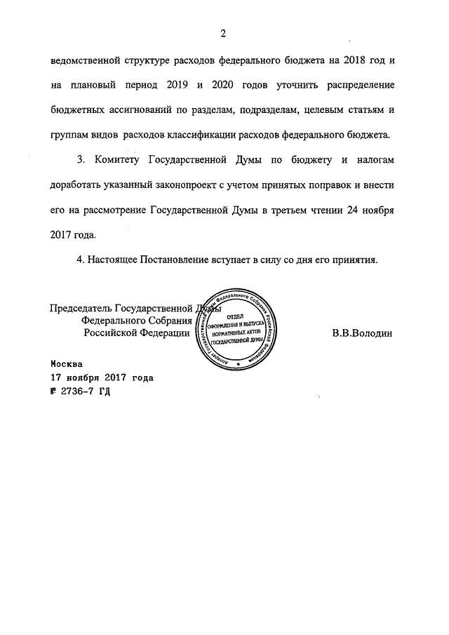 ПОСТАНОВЛЕНИЕ ГД ФС РФ от 17.11.2017 N 2736-7 ГД