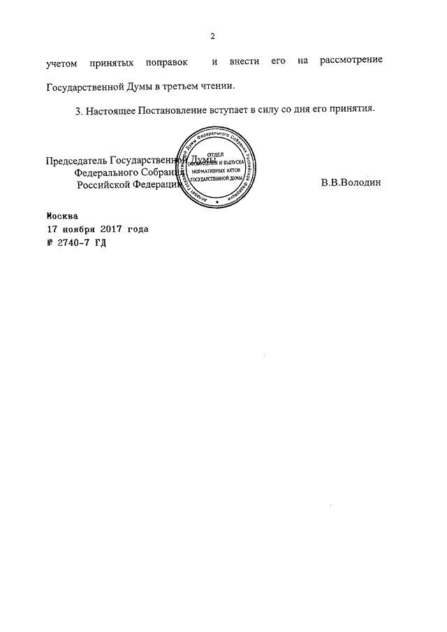 ПОСТАНОВЛЕНИЕ ГД ФС РФ от 17.11.2017 N 2740-7 ГД