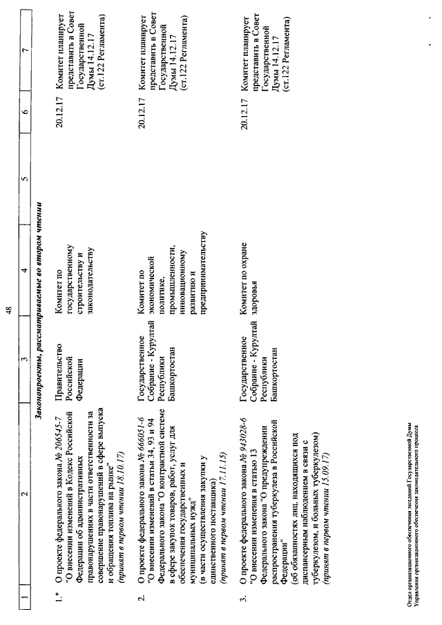 "О КАЛЕНДАРЕ РАССМОТРЕНИЯ ВОПРОСОВ ГОСУДАРСТВЕННОЙ ДУМОЙ С 6 ПО 22 ДЕКАБРЯ 2017 ГОДА"