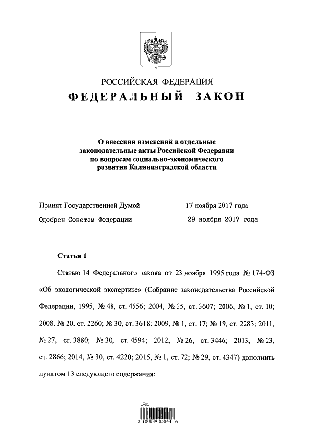 "О ВНЕСЕНИИ ИЗМЕНЕНИЙ В ОТДЕЛЬНЫЕ ЗАКОНОДАТЕЛЬНЫЕ АКТЫ РОССИЙСКОЙ ФЕДЕРАЦИИ ПО ВОПРОСАМ СОЦИАЛЬНО - ЭКОНОМИЧЕСКОГО РАЗВИТИЯ КАЛИНИНГРАДСКОЙ ОБЛАСТИ"