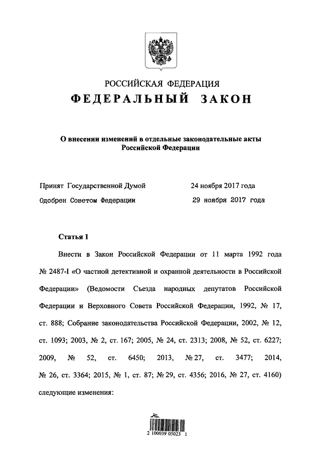 "О ВНЕСЕНИИ ИЗМЕНЕНИЙ В ОТДЕЛЬНЫЕ ЗАКОНОДАТЕЛЬНЫЕ АКТЫ РОССИЙСКОЙ ФЕДЕРАЦИИ"