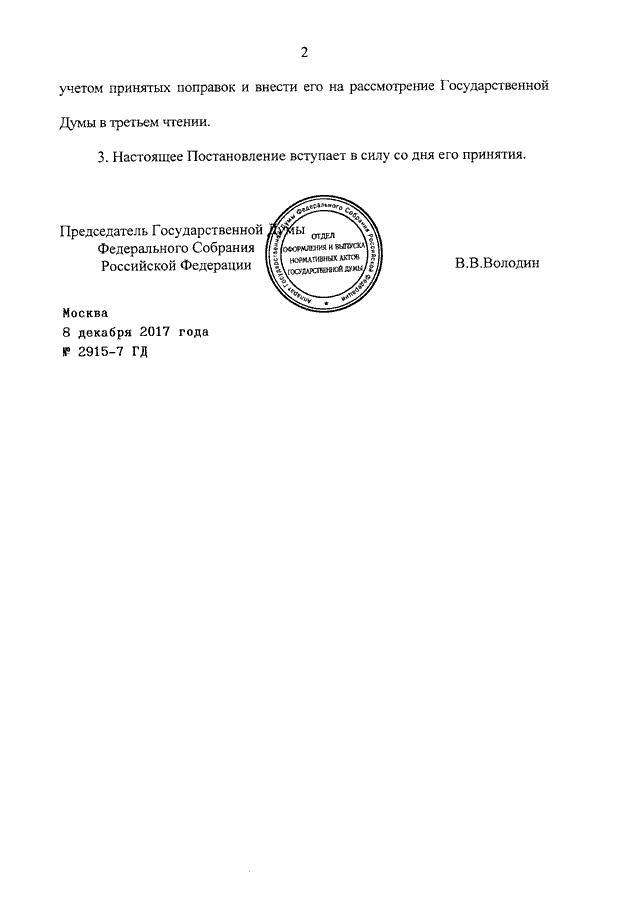ПОСТАНОВЛЕНИЕ ГД ФС РФ от 08.12.2017 N 2915-7 ГД