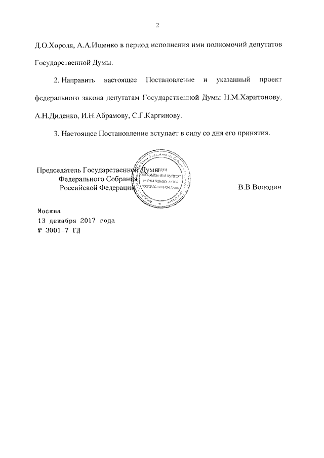 ПОСТАНОВЛЕНИЕ ГД ФС РФ от 13.12.2017 N 3001-7 ГД