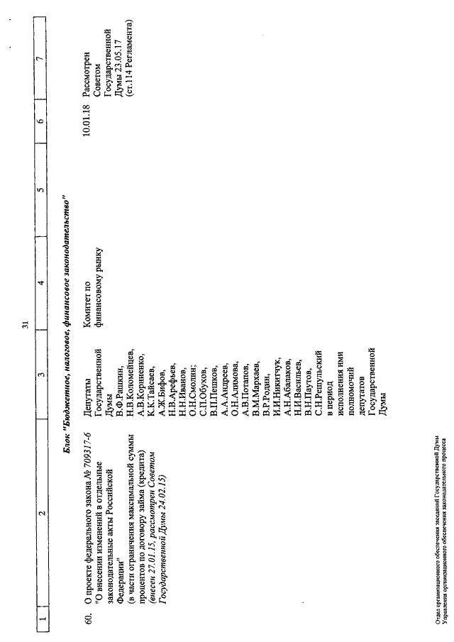 "О КАЛЕНДАРЕ РАССМОТРЕНИЯ ВОПРОСОВ ГОСУДАРСТВЕННОЙ ДУМОЙ С 10 ПО 26 ЯНВАРЯ 2018 ГОДА"