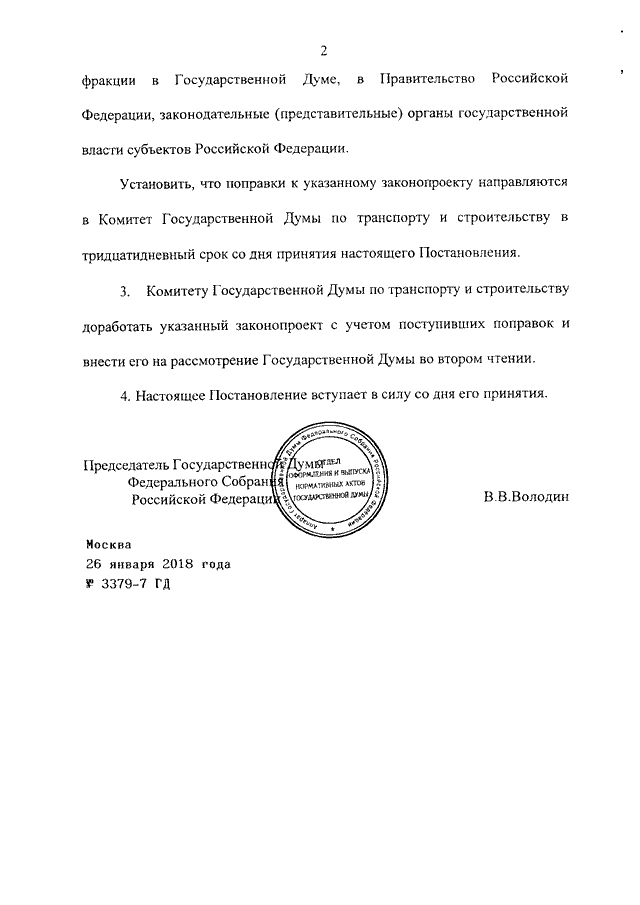 ПОСТАНОВЛЕНИЕ ГД ФС РФ от 26.01.2018 N 3379-7 ГД