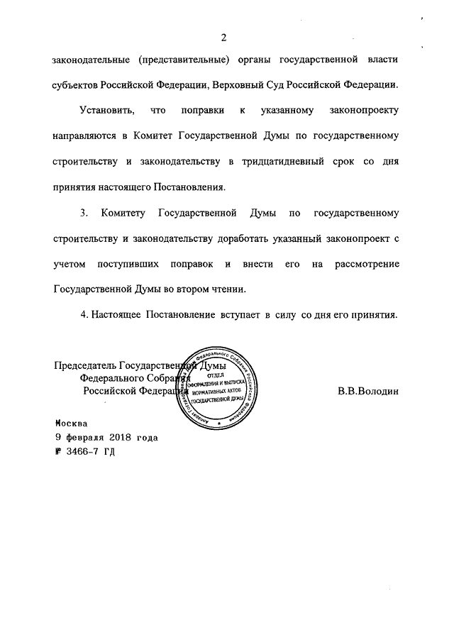 ПОСТАНОВЛЕНИЕ ГД ФС РФ от 09.02.2018 N 3466-7 ГД