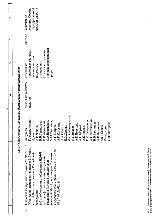 "О КАЛЕНДАРЕ РАССМОТРЕНИЯ ВОПРОСОВ ГОСУДАРСТВЕННОЙ ДУМОЙ С 21 МАРТА ПО 13 АПРЕЛЯ 2018 ГОДА"