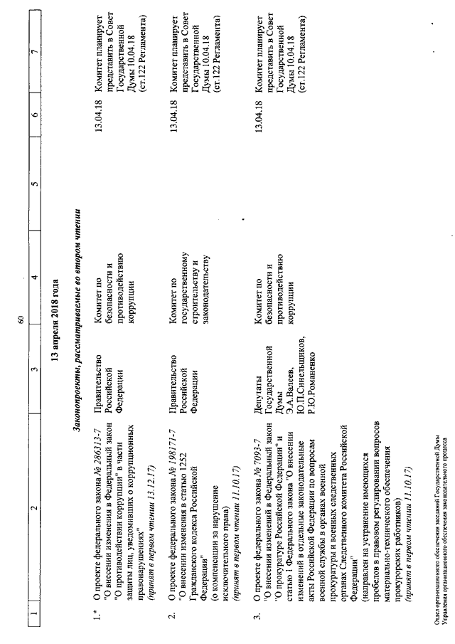 "О КАЛЕНДАРЕ РАССМОТРЕНИЯ ВОПРОСОВ ГОСУДАРСТВЕННОЙ ДУМОЙ С 21 МАРТА ПО 13 АПРЕЛЯ 2018 ГОДА"