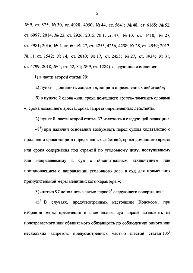 "О ВНЕСЕНИИ ИЗМЕНЕНИЙ В УГОЛОВНО - ПРОЦЕССУАЛЬНЫЙ КОДЕКС РОССИЙСКОЙ ФЕДЕРАЦИИ В ЧАСТИ ИЗБРАНИЯ И ПРИМЕНЕНИЯ МЕР ПРЕСЕЧЕНИЯ В ВИДЕ ЗАПРЕТА ОПРЕДЕЛЕННЫХ ДЕЙСТВИЙ, ЗАЛОГА И ДОМАШНЕГО АРЕСТА"