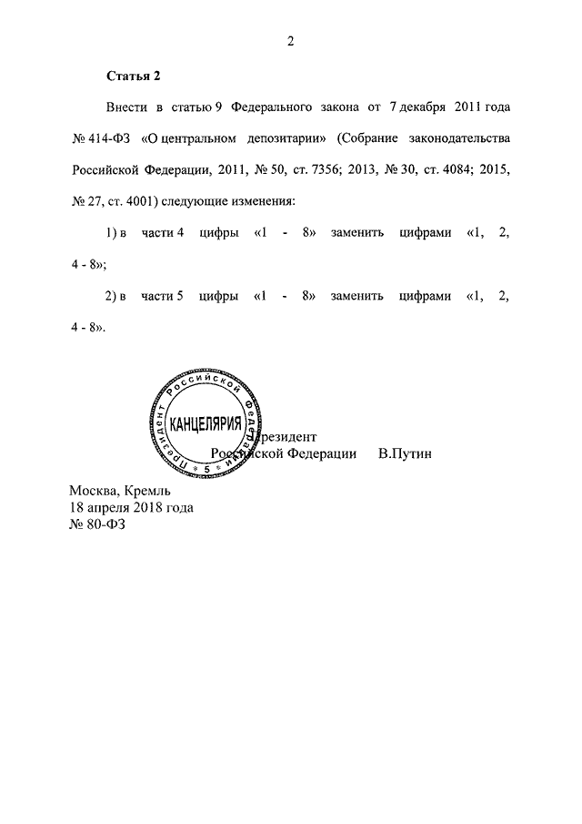 ФЕДЕРАЛЬНЫЙ ЗАКОН от 18.04.2018 N 80-ФЗ