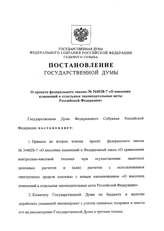 "О ПРОЕКТЕ ФЕДЕРАЛЬНОГО ЗАКОНА N 344028-7 "О ВНЕСЕНИИ ИЗМЕНЕНИЙ В ОТДЕЛЬНЫЕ ЗАКОНОДАТЕЛЬНЫЕ АКТЫ РОССИЙСКОЙ ФЕДЕРАЦИИ"