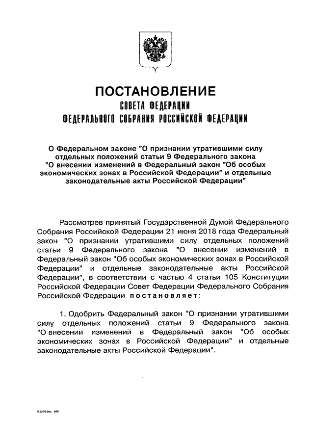 ПОСТАНОВЛЕНИЕ СФ ФС РФ от 27.06.2018 N 230-СФ
