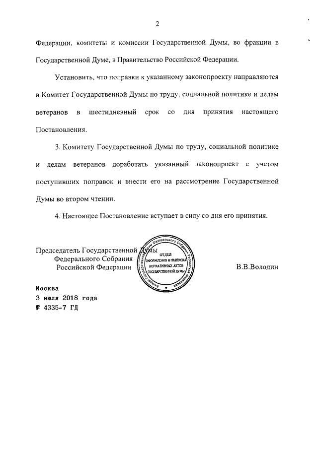 ПОСТАНОВЛЕНИЕ ГД ФС РФ от 03.07.2018 N 4335-7 ГД