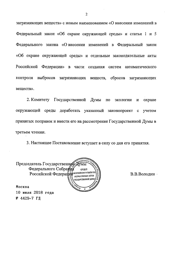 ПОСТАНОВЛЕНИЕ ГД ФС РФ от 10.07.2018 N 4429-7 ГД