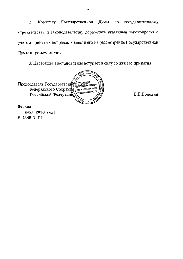 ПОСТАНОВЛЕНИЕ ГД ФС РФ от 11.07.2018 N 4446-7 ГД