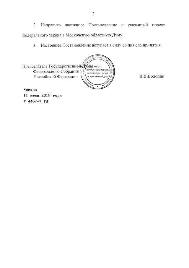 ПОСТАНОВЛЕНИЕ ГД ФС РФ от 11.07.2018 N 4467-7 ГД