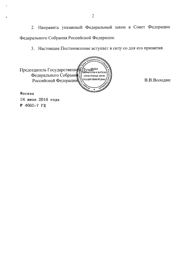 ПОСТАНОВЛЕНИЕ ГД ФС РФ от 24.07.2018 N 4662-7 ГД