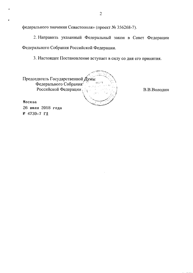 ПОСТАНОВЛЕНИЕ ГД ФС РФ от 26.07.2018 N 4739-7 ГД