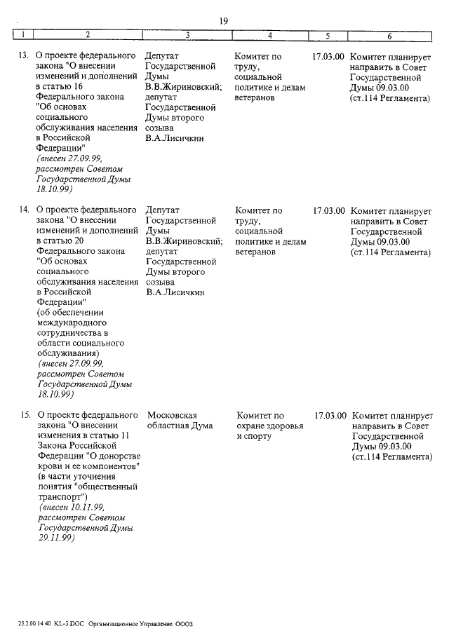"О КАЛЕНДАРЕ РАССМОТРЕНИЯ ВОПРОСОВ ГОСУДАРСТВЕННОЙ ДУМОЙ С 10 ПО 24 МАРТА 2000 ГОДА"