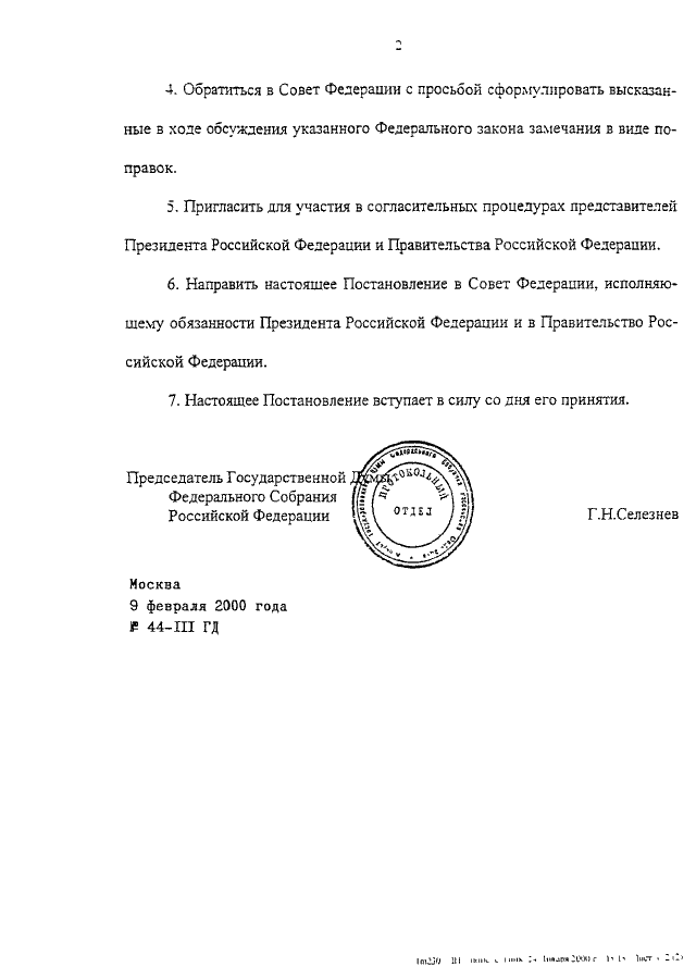 ПОСТАНОВЛЕНИЕ ГД ФС РФ от 09.02.2000 N 44-III ГД