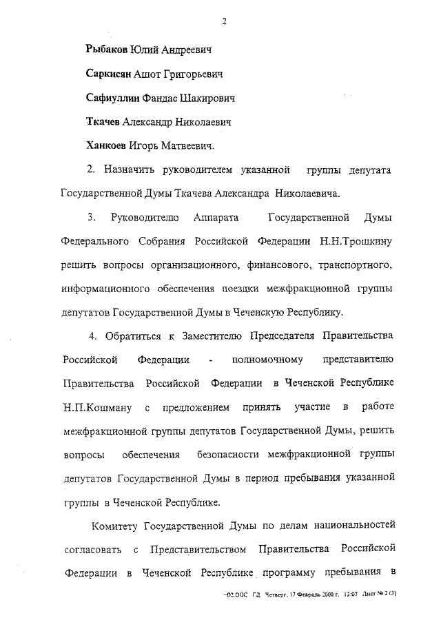 "О НАПРАВЛЕНИИ МЕЖФРАКЦИОННОЙ ГРУППЫ ДЕПУТАТОВ ГОСУДАРСТВЕННОЙ ДУМЫ В ЧЕЧЕНСКУЮ РЕСПУБЛИКУ ДЛЯ ОЗНАКОМЛЕНИЯ С СОЦИАЛЬНО - ЭКОНОМИЧЕСКОЙ ОБСТАНОВКОЙ, СЛОЖИВШЕЙСЯ В РЕСПУБЛИКЕ В ХОДЕ ПРОВЕДЕНИЯ АНТИТЕРРОРИСТИЧЕСКОЙ ОПЕРАЦИИ НА СЕВЕРНОМ КАВКАЗЕ"