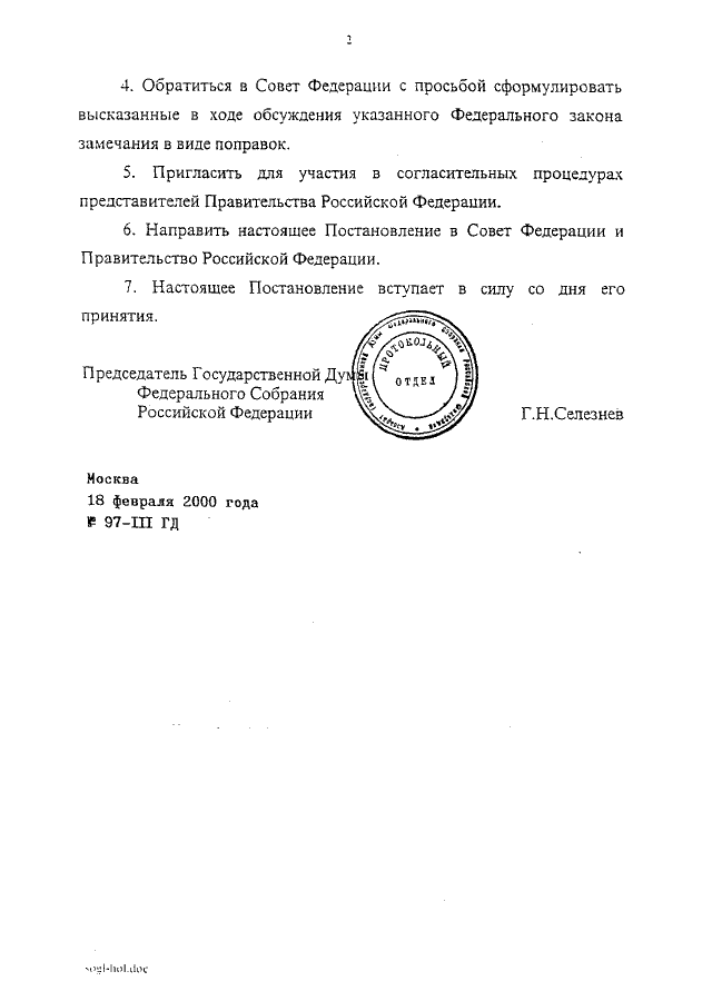 ПОСТАНОВЛЕНИЕ ГД ФС РФ от 18.02.2000 N 97-III ГД