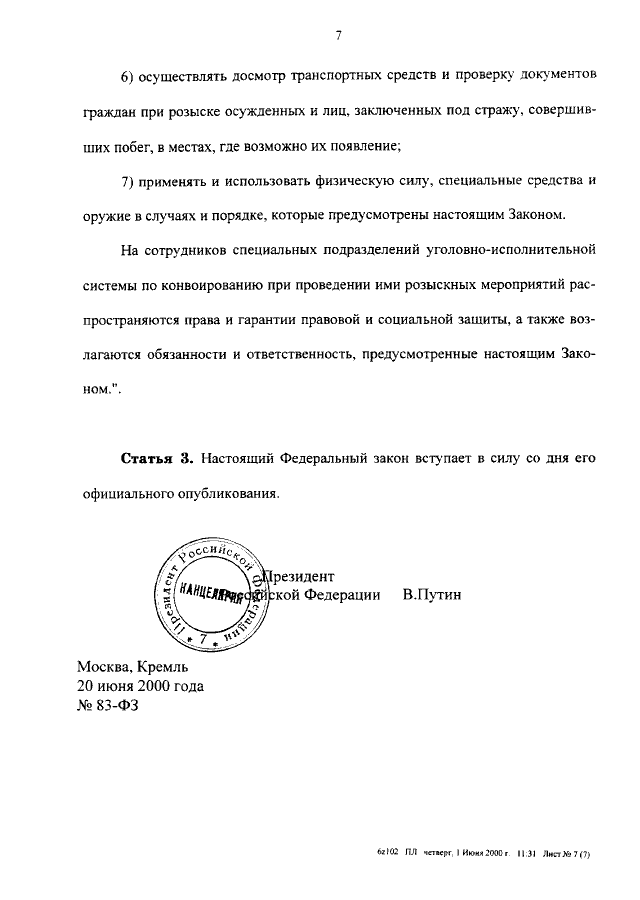 ФЕДЕРАЛЬНЫЙ ЗАКОН от 20.06.2000 N 83-ФЗ