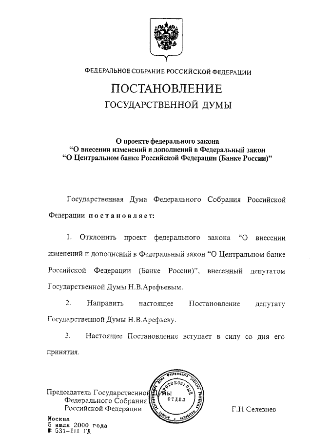 ПОСТАНОВЛЕНИЕ ГД ФС РФ от 05.07.2000 N 531-III ГД