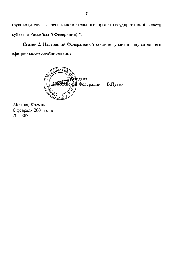 ФЕДЕРАЛЬНЫЙ ЗАКОН от 08.02.2001 N 3-ФЗ