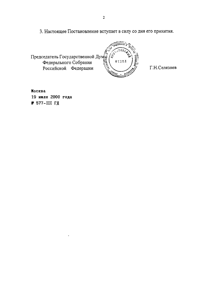 ПОСТАНОВЛЕНИЕ ГД ФС РФ от 19.07.2000 N 577-III ГД