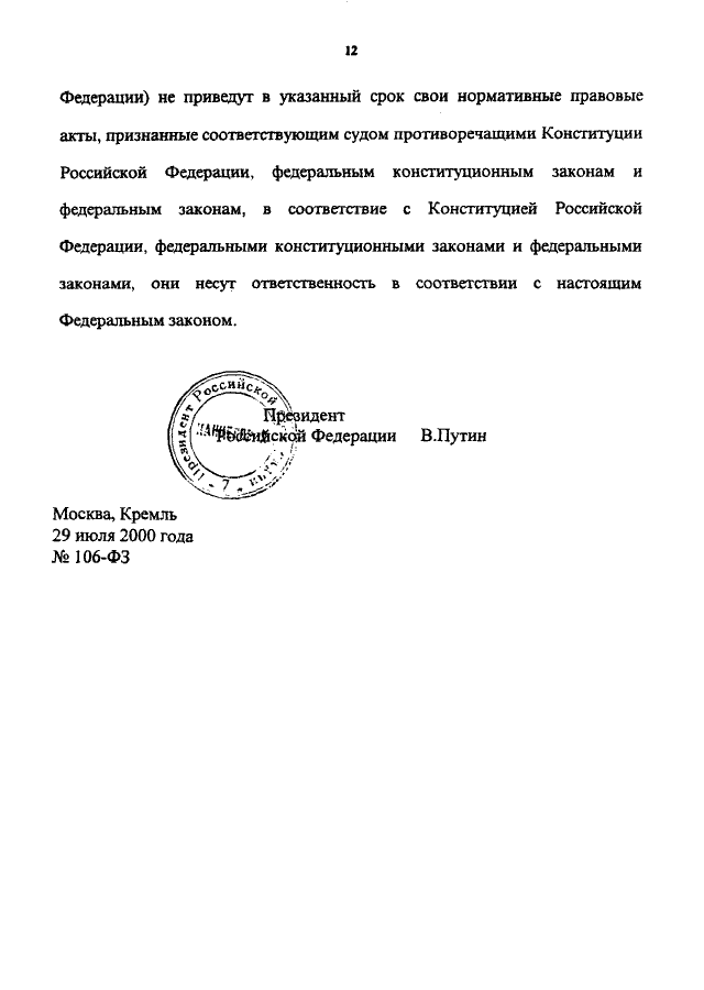 ФЕДЕРАЛЬНЫЙ ЗАКОН от 29.07.2000 N 106-ФЗ