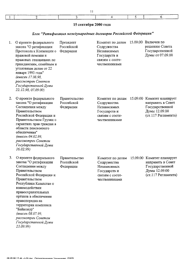 "О КАЛЕНДАРЕ РАССМОТРЕНИЯ ВОПРОСОВ ГОСУДАРСТВЕННОЙ ДУМОЙ С 8 ПО 22 СЕНТЯБРЯ 2000 ГОДА"