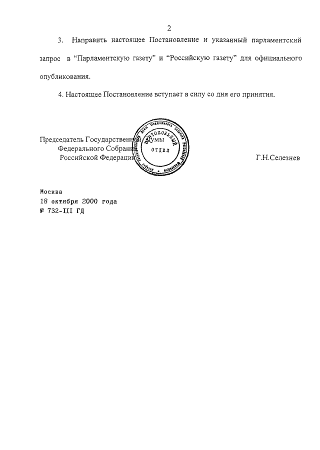 ПОСТАНОВЛЕНИЕ ГД ФС РФ от 18.10.2000 N 732-III ГД