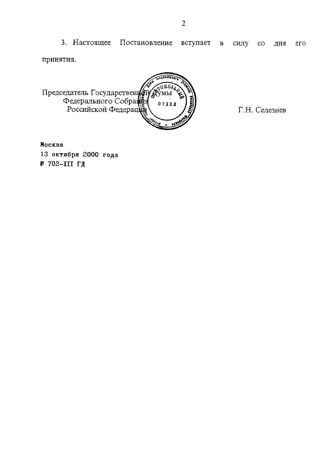 ПОСТАНОВЛЕНИЕ ГД ФС РФ от 13.10.2000 N 702-III ГД