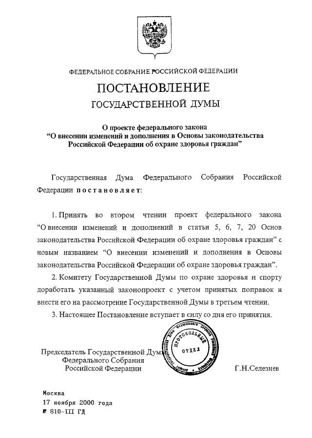 ПОСТАНОВЛЕНИЕ ГД ФС РФ от 17.11.2000 N 810-III ГД