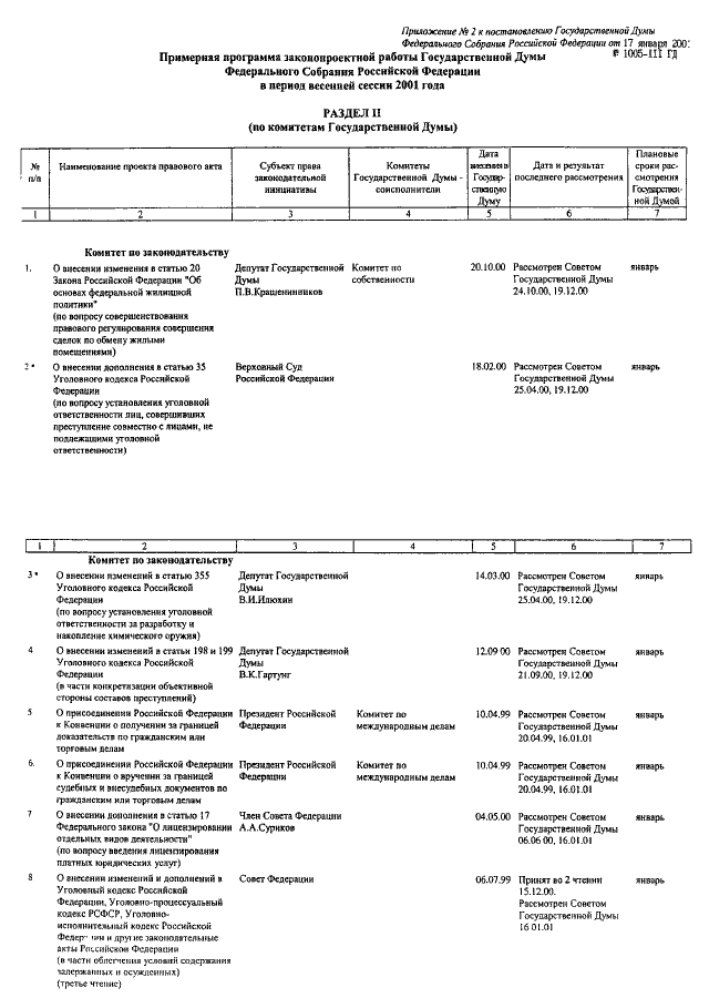 ПОСТАНОВЛЕНИЕ ГД ФС РФ от 17.01.2001 N 1005-III ГД