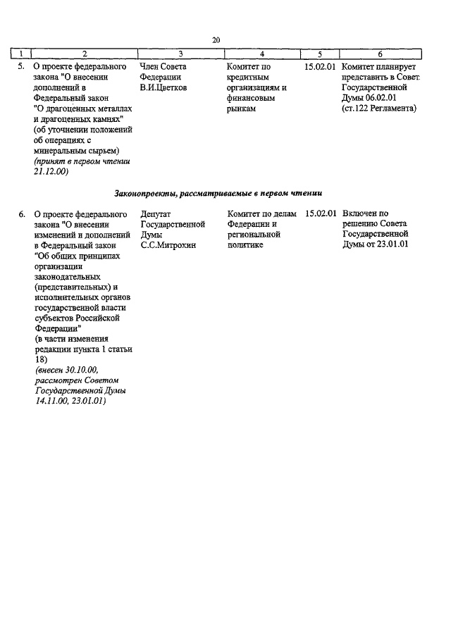 "О КАЛЕНДАРЕ РАССМОТРЕНИЯ ВОПРОСОВ ГОСУДАРСТВЕННОЙ ДУМОЙ С 7 ПО 22 ФЕВРАЛЯ 2001 ГОДА"