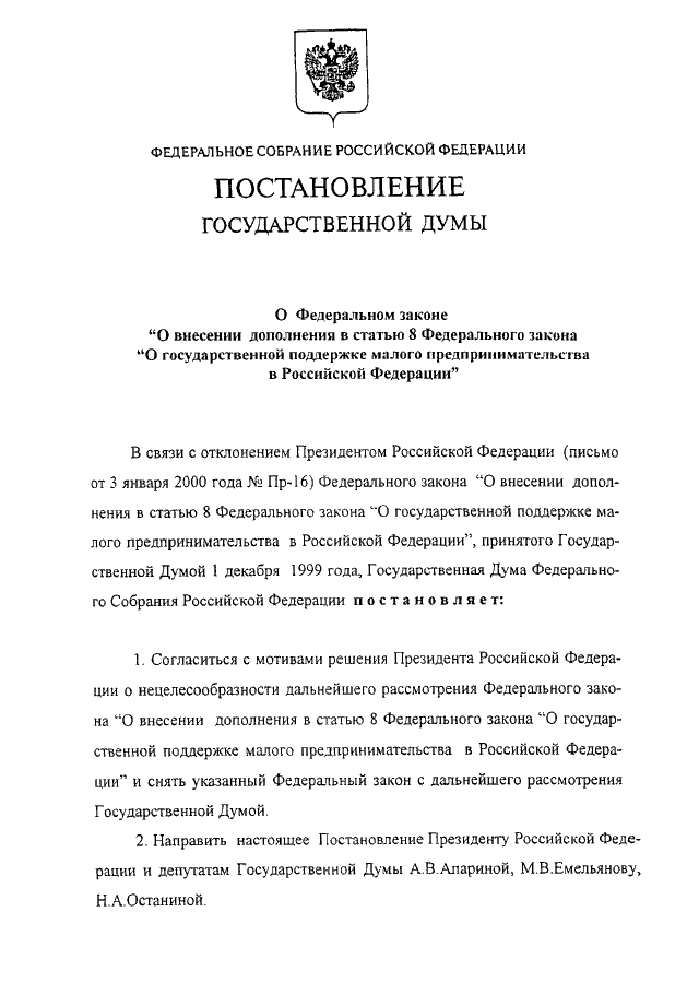 "О ФЕДЕРАЛЬНОМ ЗАКОНЕ "О ВНЕСЕНИИ ДОПОЛНЕНИЯ В СТАТЬЮ 8 ФЕДЕРАЛЬНОГО ЗАКОНА "О ГОСУДАРСТВЕННОЙ ПОДДЕРЖКЕ МАЛОГО ПРЕДПРИНИМАТЕЛЬСТВА В РОССИЙСКОЙ ФЕДЕРАЦИИ"