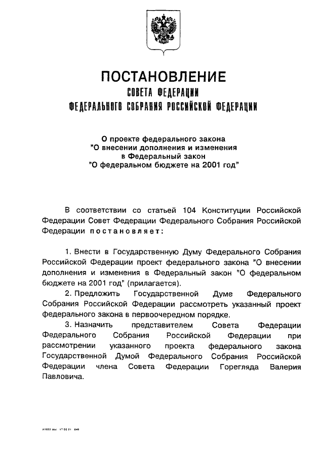 ПОСТАНОВЛЕНИЕ СФ ФС РФ от 16.05.2001 N 157-СФ