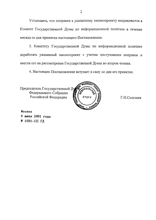 ПОСТАНОВЛЕНИЕ ГД ФС РФ от 06.06.2001 N 1581-III ГД