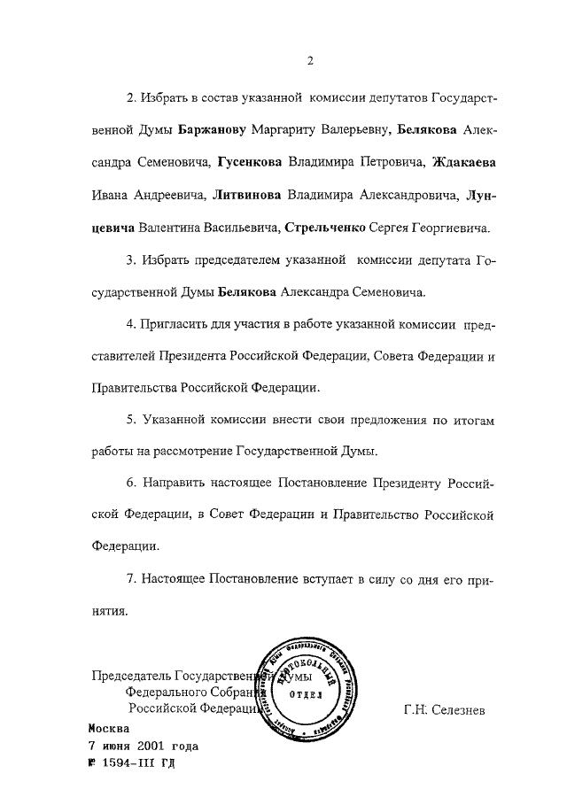ПОСТАНОВЛЕНИЕ ГД ФС РФ от 07.06.2001 N 1594-III ГД
